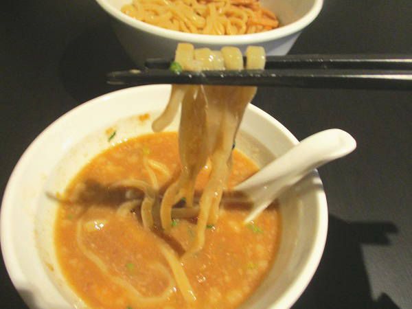 麺は、中太平打ち麺で、麺の並盛(200g)・中盛(250g)は同じ料金です。