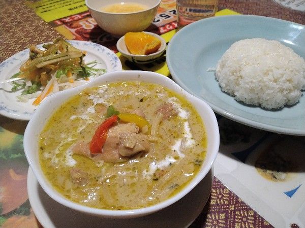 たくさんのメニューの中にから今回は「グリーンカレー」にしました。