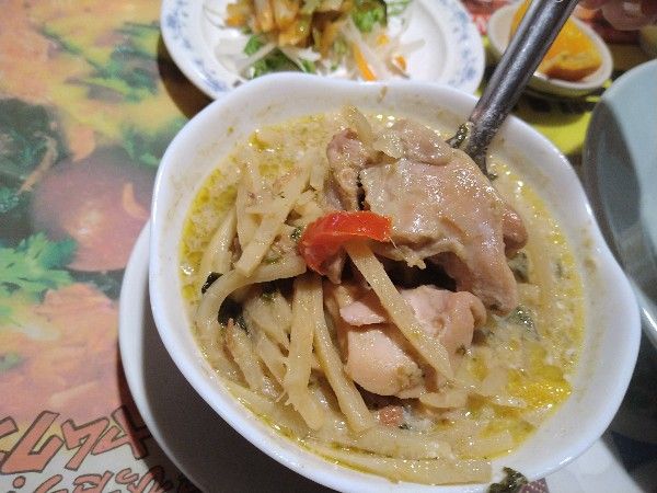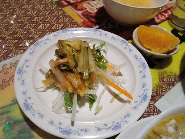 ちょっと辛さが舌に感じてくるときに、ひんやりとシャキシャキしたサラダがお口の中をひと休み。酸味の効いたシャキシャキサラダでした。