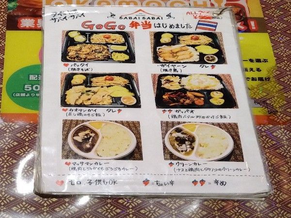 「サバイ・サバイ」はテイクアウトも充実しています。しかも、こちらもリーズナブル!¥550という何とも嬉しい料金設定です。