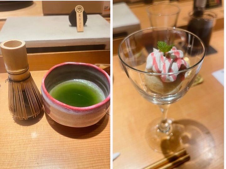 食後にはお抹茶とデザートも。
