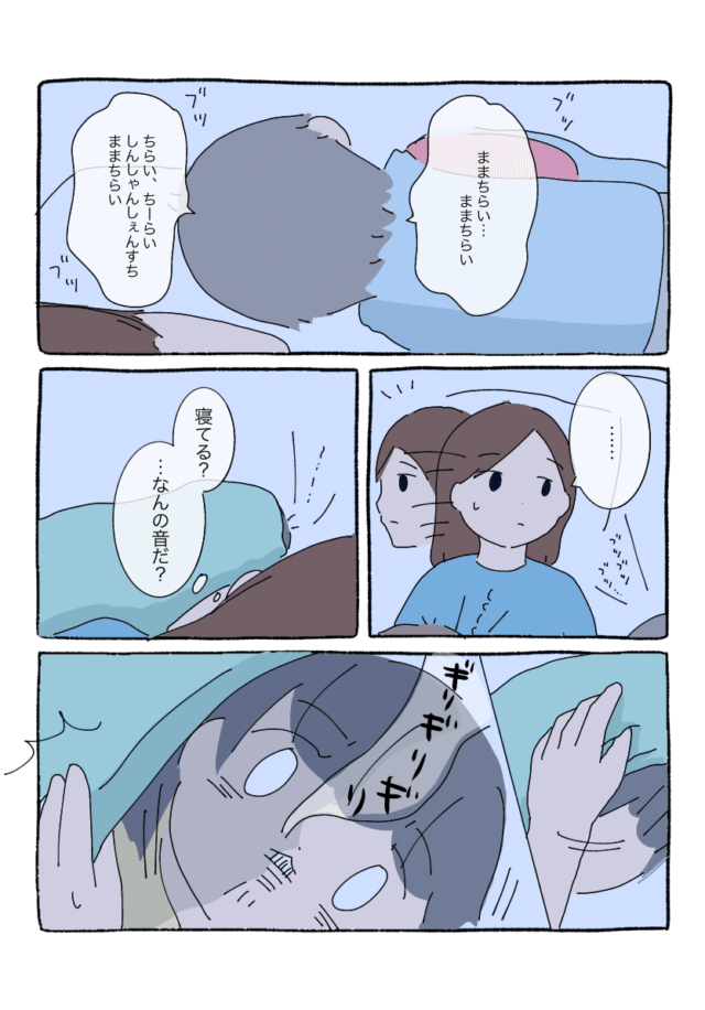 3. 「ままちらい」が地味に刺さるな・・。モヤモヤしたのも吹っ飛んだ三者三様の寝かしつけ事情|めめの育児絵日記