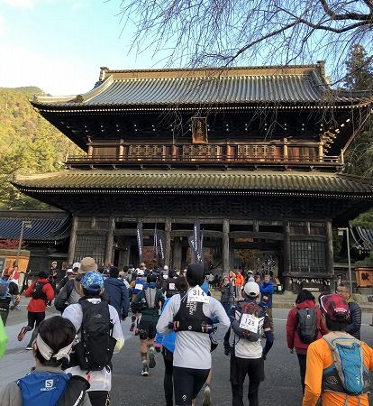 日蓮宗総本山の久遠寺三門から登る修行走レース