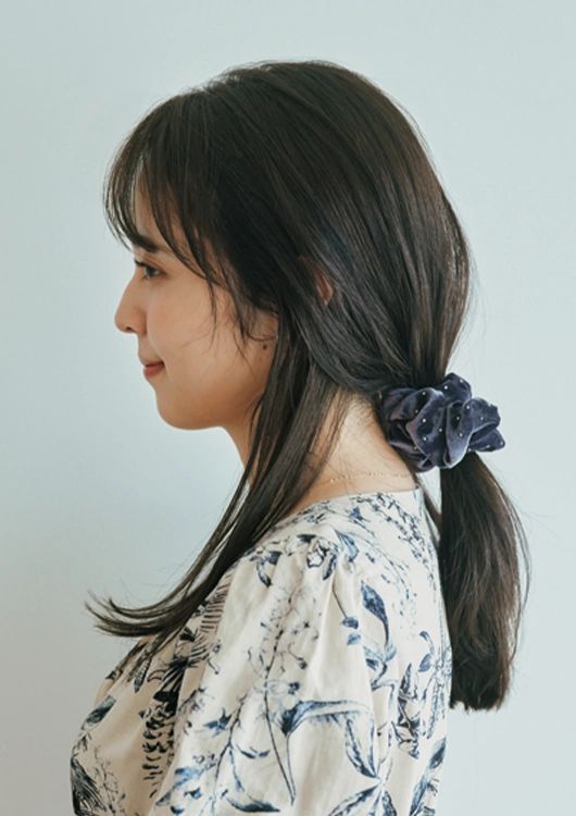 結ぶだけで決まる楽ちんなシュシュは、計算ずくなゆるさを仕込むことで、こなれた感と美人度の両方がアップ!