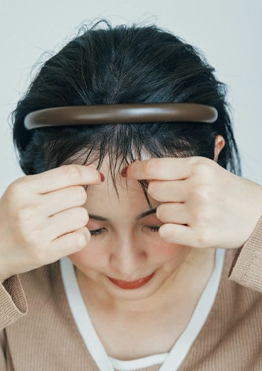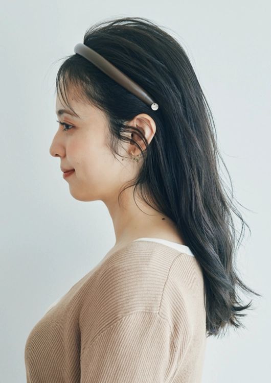 大人のカチューシャは前髪とおくれ毛でヘアにカジュアルさを加えると、コンサバにならず今っぽさがアップ!