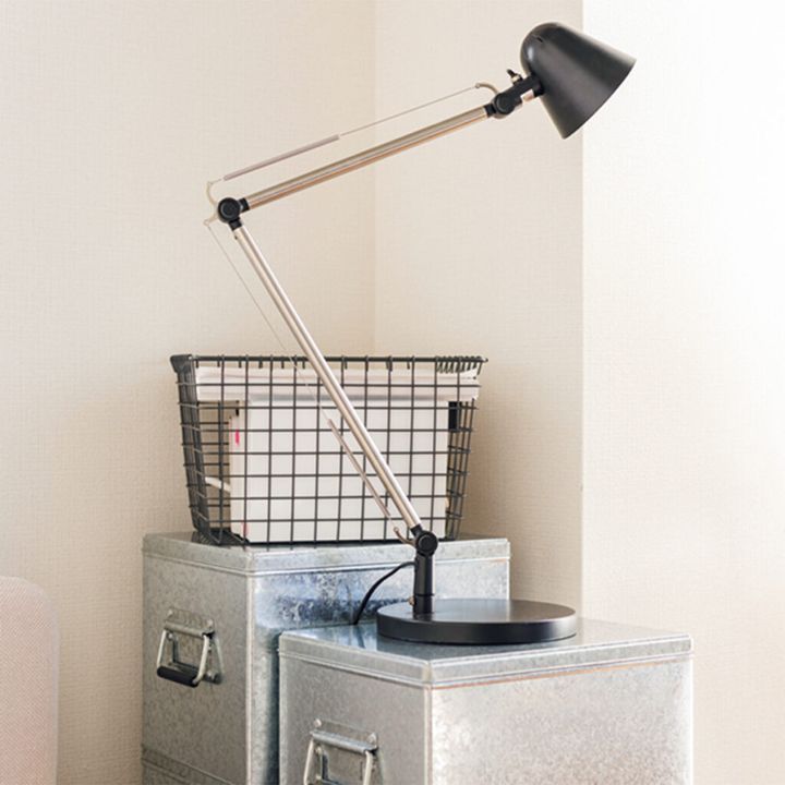 仕事の資料は無印良品のトタンボックスにすっきり収納。積み重ねできるのでスペースの有効活用にも。