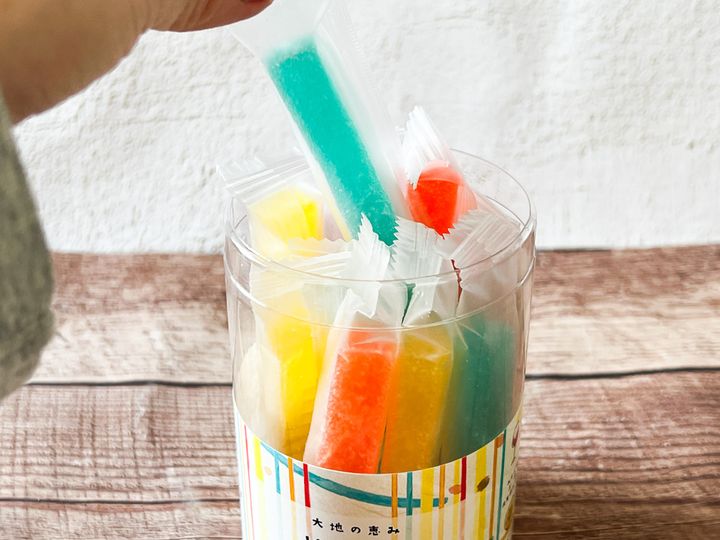お手軽な価格とかわいい見た目でお土産にも使いやすい「大地のめぐみ いろどりスティックゼリー」。4つの味わいが楽しめるゼリーは、もらったらうれしいですよね。