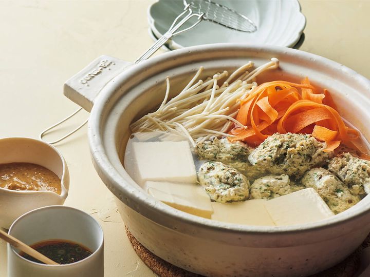 好みのタレで味変も楽しめる♪免疫力UP食材を使ったあったか鍋レシピ【薬味鶏つみれの湯豆腐】