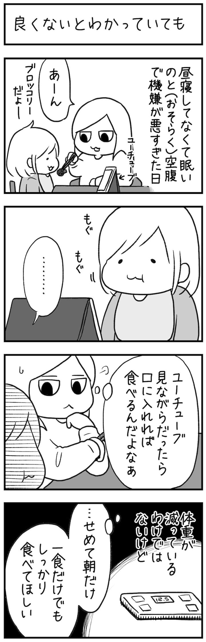 Ameba公式トップブロガーである主婦のやき子さん。娘のういちゃんになんとかごはんを食べてもらおうと、最終手段としてYouTubeを見せながら食事をさせることに。良くはないと思いながら、自分とも葛藤しつつ子どもにごはんを食べさせるやき子さんですが、更なる大きな問題に直面します。やき子さんの漫画「良くないとわかっていても」「ふたたび」2本合わせてどうぞごらんください。