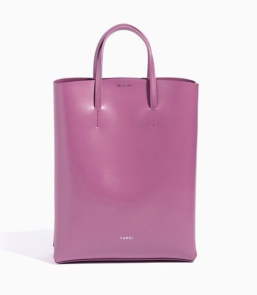 レザートートバッグ 27,500円/ヤーキ(ヤーキ オンラインストア) A4サイズが収まる、マチもしっかり大容量のサイズ感。内部には外側から見えないようにショルダーストラップを内蔵。くすんだピンクとパープルの間のような色味も絶妙。