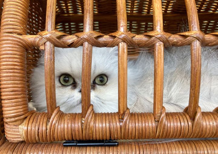 キャリーバッグに入れられないように、いつも逃げ回っているんだけど、やっぱり今日も捕まってしまったわ。
