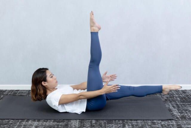 一連を1セットとし、“1日あたり5セットを目標”に実践します。なお、期待する効果をきちんと得るためには「脚を上下させる時にひざを曲げないこと」「両脚や股関節を開かないこと」の2つがポイント。脚の動きに集中するあまり、ひざや股関節への意識が薄れてしまいやすいので、注意してくださいね。<ピラティス監修:Minami(トレーナー歴4年)>
