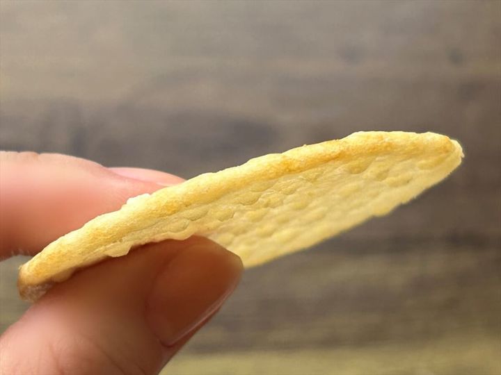 極薄ならではの、パリッと歯応えのよい軽い食感が特徴的。程よい塩味で、お米の旨みや甘みが引き立てられています。シンプル味わいで、ついつい手が伸びるおいしさです。