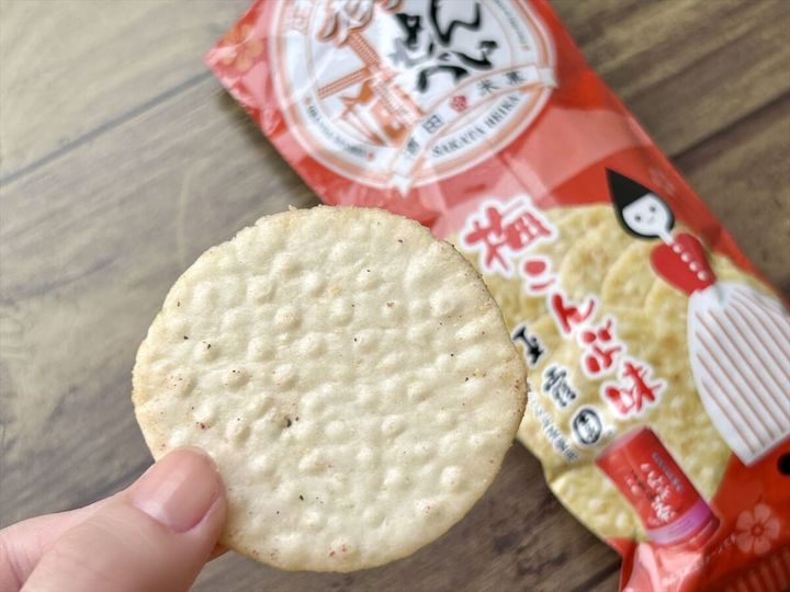 爽やかな梅の香りと、昆布の風味がほんのり。お米の甘みを感じるせんべいととてもよくマッチしています。