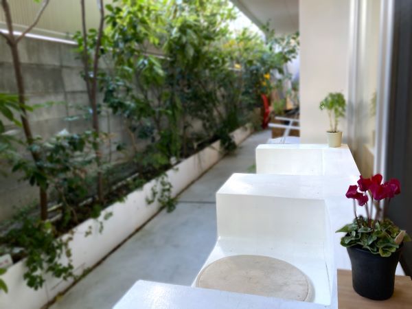 中庭もあり、水の音が心地よく響いてました。お昼時はここでランチをする方もいるそう。