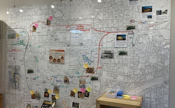 ドーンと松山市のマップ。観光名所はもちろん、伺った時はなんと「オススメのラーメン屋さん」が付箋に書いて貼ってありました。これは、生の声だけにどのお店も気になる~!