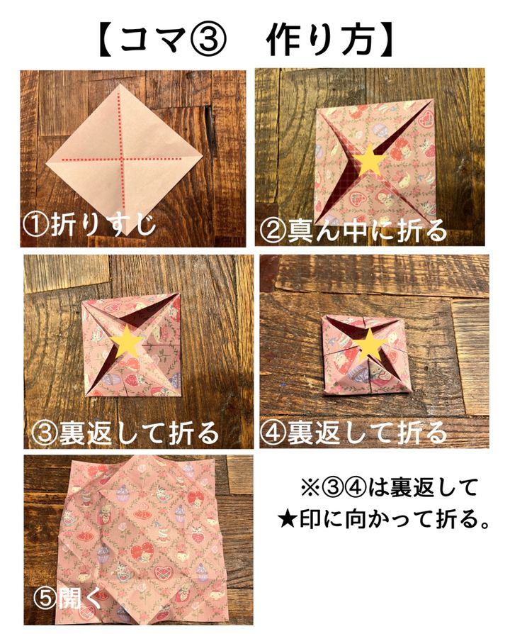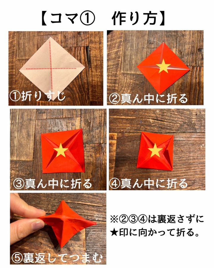 3. 【図解で解説】折り紙3枚でできる! 子どもと遊んで楽しいコマの作りかた
