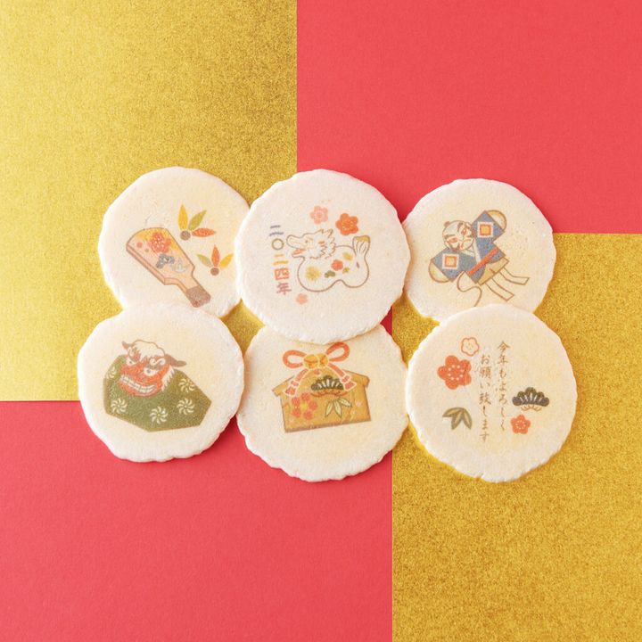 えび本来の美味しさをそのままに楽しめる、えびせんべいが人気の桂新堂(東京、大阪、名古屋、福岡を中心とした全国主要百貨店、駅、空港にあり)。えびの濃厚な旨味が味わえるお店を代表する商品「赤えび炙り焼き」の他に、まるで年賀状のようなメッセージや干支が描かれたえびせんべいの詰め合わせ。1枚ずつ個包装になっており、賞味期限が長いのも嬉しい! なくなり次第終了なので、気になる方は急いで。
