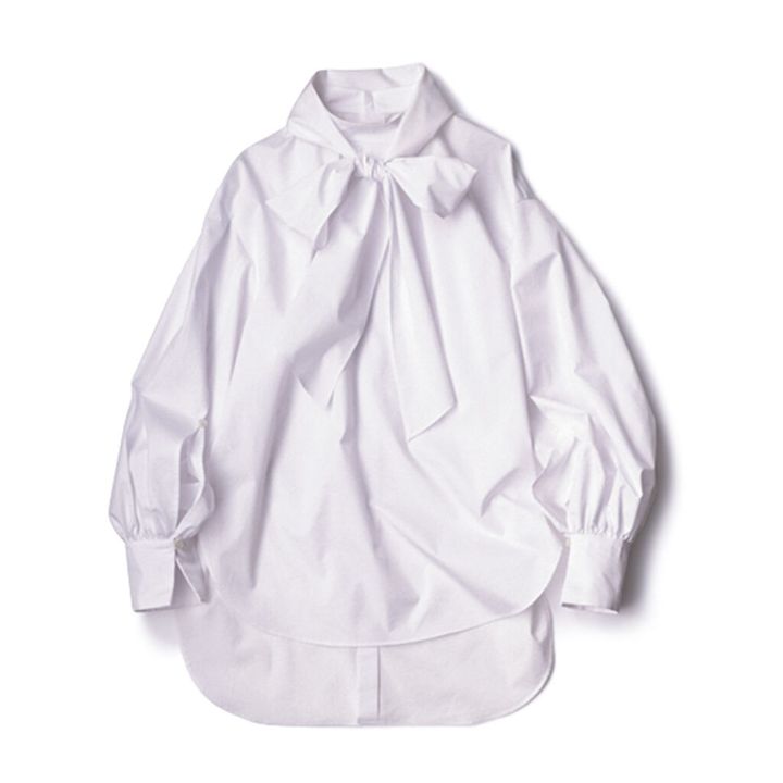 リボンの取り外しが可能なので、スタンドカラーのシャツとしても。¥37,400(ANAYI)