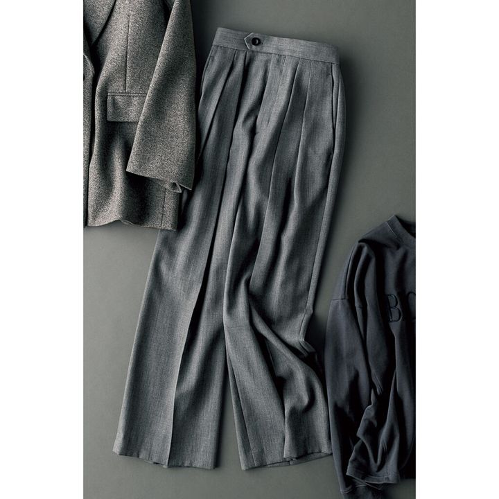 メンズっぽい一本。タック入りが今季らしい。パンツ¥23,980(ネイヴ)