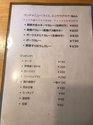 カレーや満店堂は、オリジナルのカレーを召し上がることができるお店です。ランチタイムでは、ベジタリアンにもおすすめ[野菜のすりおろしカレー]、個性的なスパイスを使った辛口の[粗挽き坦々キーマカレー]など、5種類から選ぶことができました。