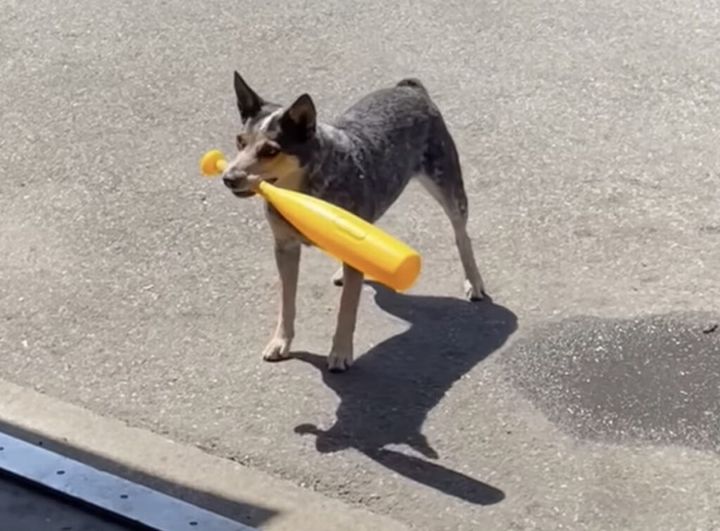 一緒に野球しようぜ!やる気満々でバットを構える犬。