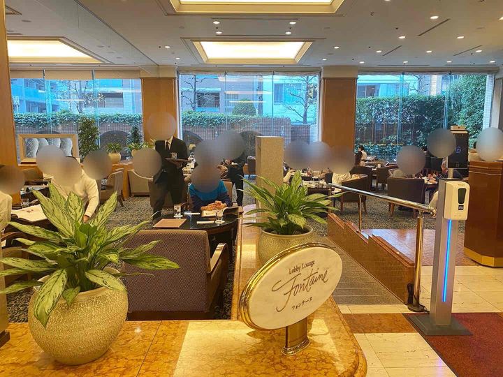 ロイヤルパークホテルの正面入り口から入って、フロアの奥まで進むと左手にあるのがロビーラウンジ「フォンテーヌ」。老舗ホテルらしいクラシックなインテリアが落ち着く空間です。