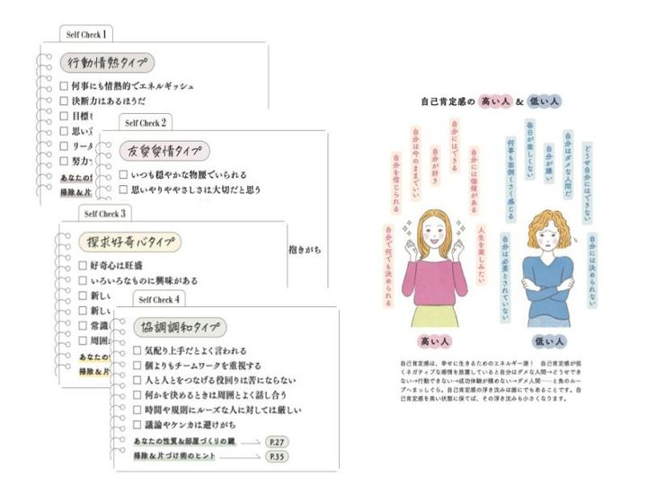 本書では、人の本質を「行動情熱タイプ」「友愛愛情タイプ」「探求好奇心タイプ」「協調調和タイプ」4つに分け、タイプごとに寄り添った心地よい部屋づくりのポイントを紹介。セルフチェックリストを通じて特定した自分のタイプに合わせて、それぞれにあった部屋づくりのアイデアを得ることができる。