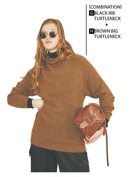 「応用の利く黒リブタートルとビッグニットのコンビ。1枚のニットのように一体化するコンパクトなタートルとゆるニット。中と外のシルエットにコントラストを効かせることで、レイヤードしても華奢見せがかなう」(樋口さん)