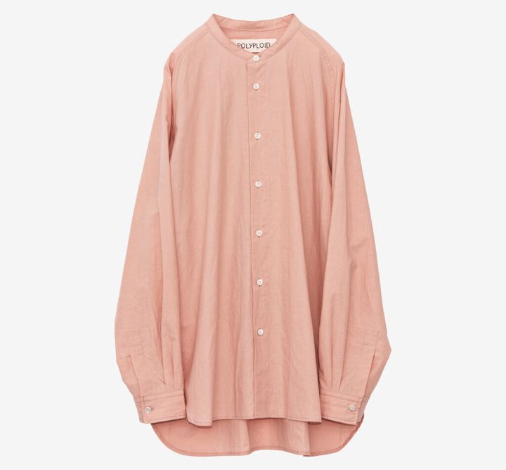 上質な素材使いとミニマルなスタイルに定評があるベルリン発のユニセックスブランド〈ポリプロイド〉。定番のスタンドカラーシャツは、身幅が広く、丈は長めで、空気をはらむようなゆったりとしたシルエット。コットンとリネンを混紡し、高密度に織り上げたタイプライター生地のハリ感が、凛とした印象に導いてくれる。春夏の新作には淡いピンクが仲間入り。