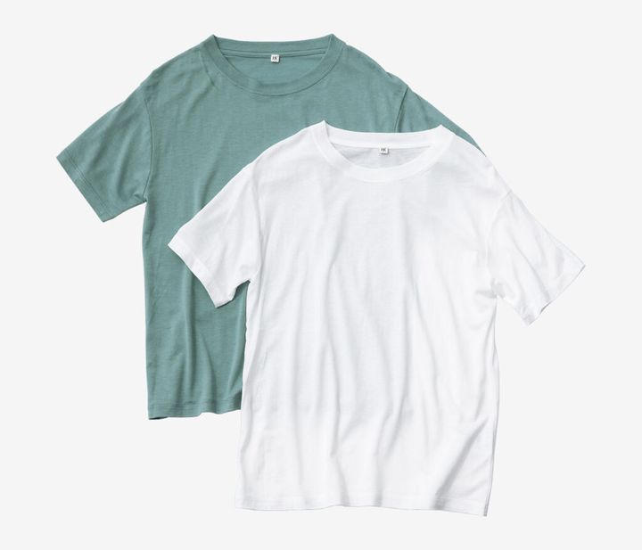 肌への優しさと美しいラインを追求する〈ハクジ〉から、ワードローブの定番になりそうなTシャツを。ユーカリを原料とした再生繊維であるテンセルに、コットンを混紡したエシカルな生地は、滑らかなタッチで着心地が抜群。袖を通すと自然なドレープが生まれ、光沢とほんのりとした透け感もあり、カジュアルながらもどこか上品な雰囲気に。