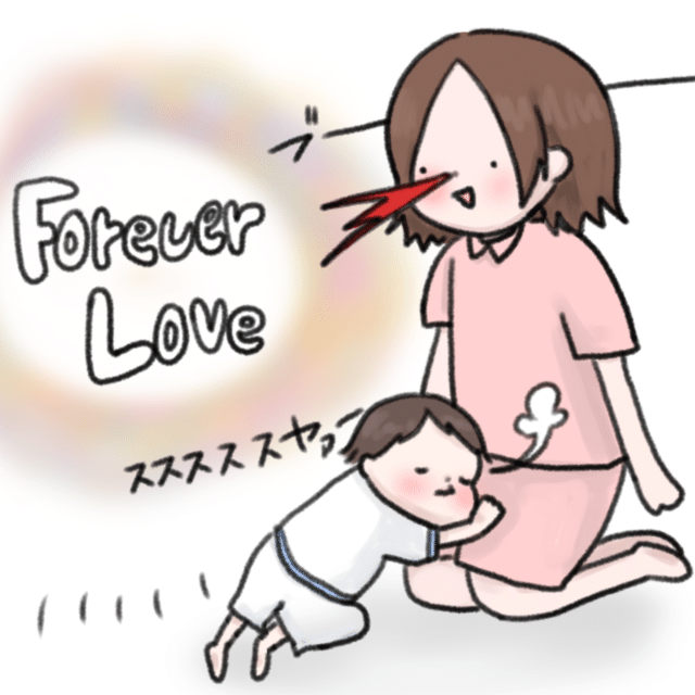 とっても楽しい夢を見ていたのかな?可愛らしい笑顔の後、お母さんにピタッとしてくるのがたまりません!