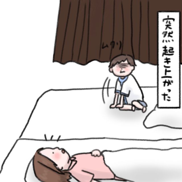 2歳の男の子みぃくんのお母ちゃんであるねむりひつじさんから、真夜中に起こったできごとです。突然むくりと起き上がったみぃくん・・・どうしたのかな?