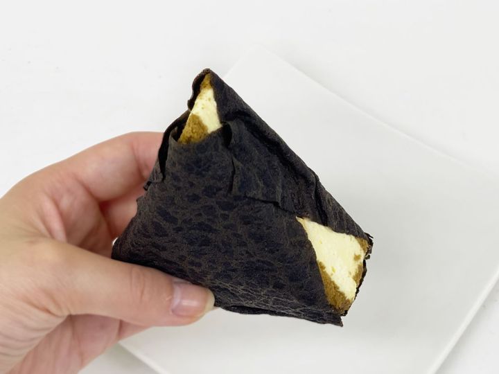 2つ目は、まるでおにぎりのような見た目の「OSAKA OMUSUBI Cake(おおさか おむすび けーき)」の「おむすびケーキ」をセレクト。インパクトある見た目で、「REIREI」でもオープンから約1カ月で1000個以上売り上げている注目のスイーツです。