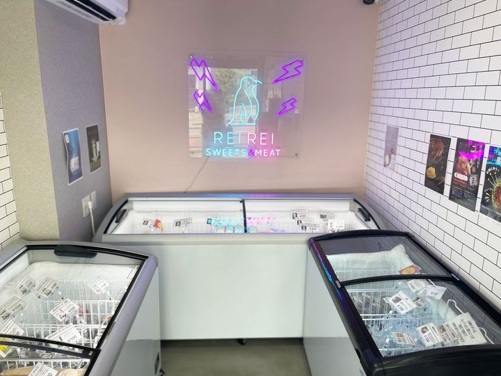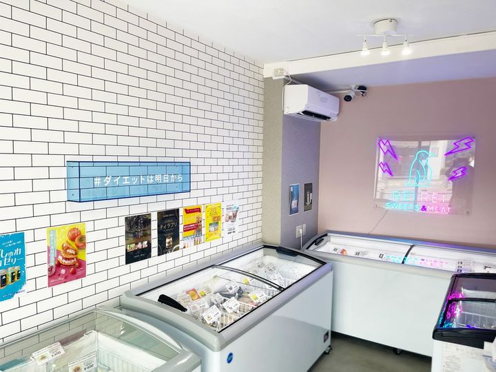冷凍庫の中にはスイーツや肉グルメ35種類以上がずらっと並んでいて、選ぶ段階からワクワク。商品は常に最先端トレンド商品を販売すべく不定期で入れ替わるので、公式SNSで確認してから訪れるのがおすすめです。