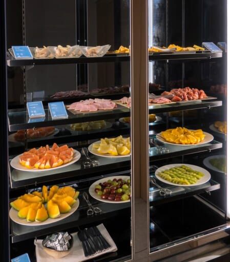 ▲フルーツやナッツと合わせたバーチャーミューズリーやハム、フレッシュなフルーツなど