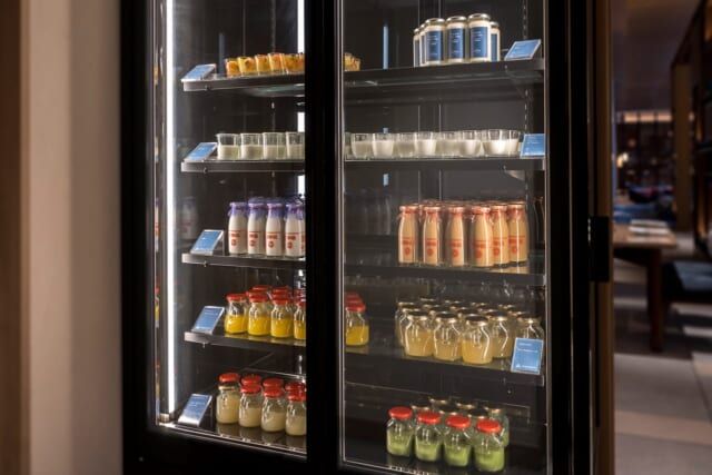 ホテルでは見かけることのない瓶牛乳。ネイバーフッドをより体感できるよう岐阜県関市のご当地牛乳「関牛乳」の、あえて瓶を用意します。関市周辺の酪農家の生乳を使った牛乳は、思いのほか甘味があって美味。おすすめの1本です。