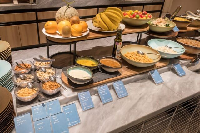 フレッシュなフルーツやサラダ、味のいいドレッシングが並びます
