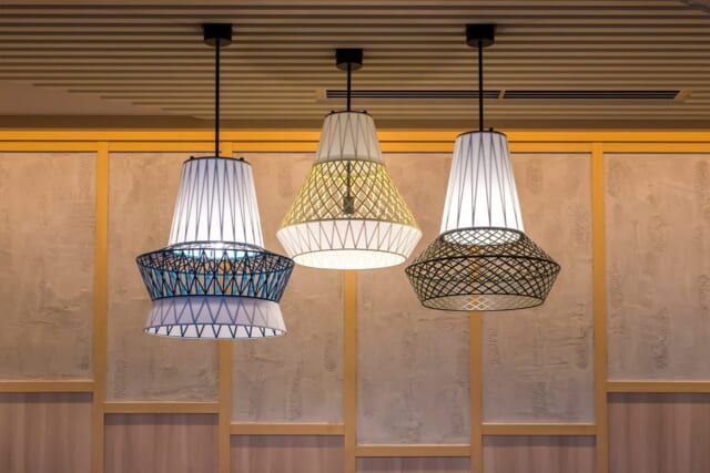 ホテルのすぐ横を流れる木曽川では、6月から10月中旬まで鵜飼がおこなわれます。鵜飼の松明をモチーフにした照明も、ネイバーフッド(近所、地域)をコンセプトにしたデザインのひとつ。形も様々あるので、ぜひ見くらべてみてください。