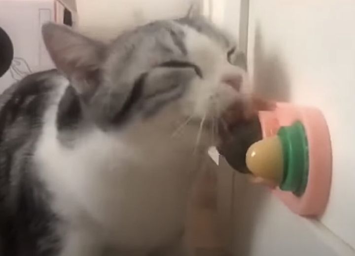 3. たまらにゃ〜い♪ 壁にまたたびボールをつけてメロメロになる猫さんが見れた♪