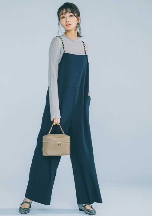 リブニット¥4,939/VIS サロペット¥14,190/ロペピクニック ピアス¥5,500/MEX(ロードス) バッグ¥2,990/神戸レタス パンプス¥15,950/ダイアナ(ダイアナ銀座本店)