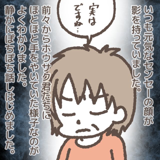 いつも元気な先生の顔が影を持っていたので、これまでホウサク君たちにほとほと手を焼いていた様子が赤井ふみさんにはよくわかりました。