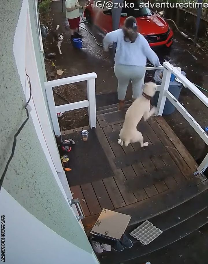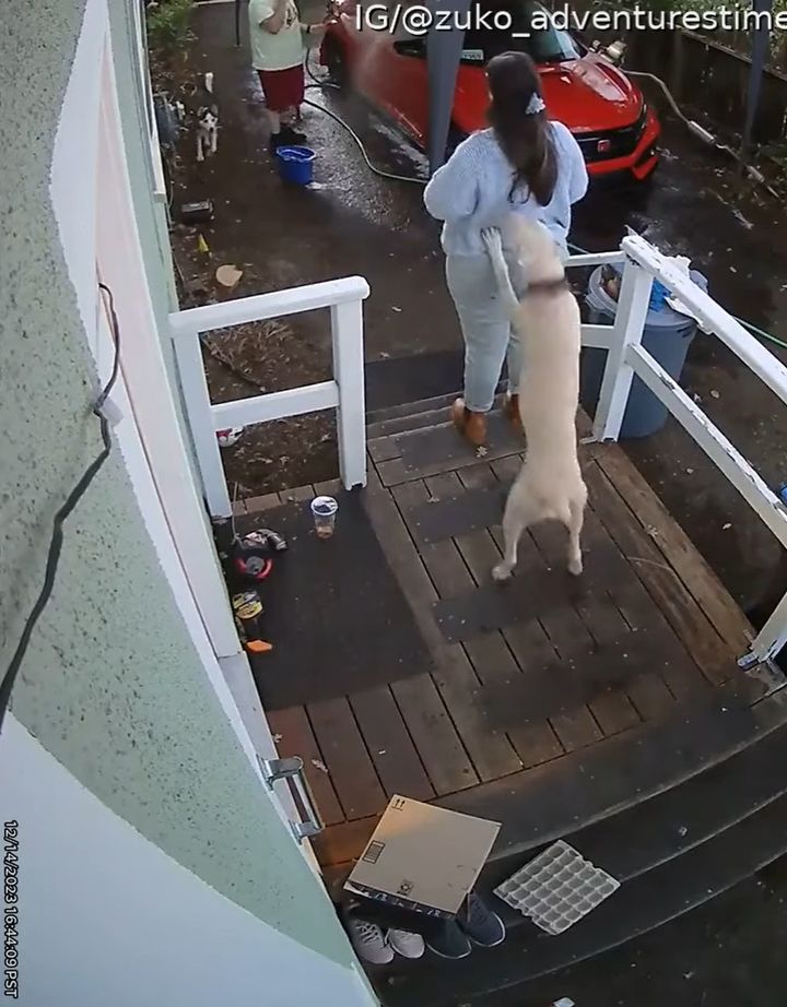 動画が撮影されたのは、アメリカ・カリフォルニア州のとあるお宅。 ドーベルマンのある行動が玄関に設置されたカメラに映っていました。