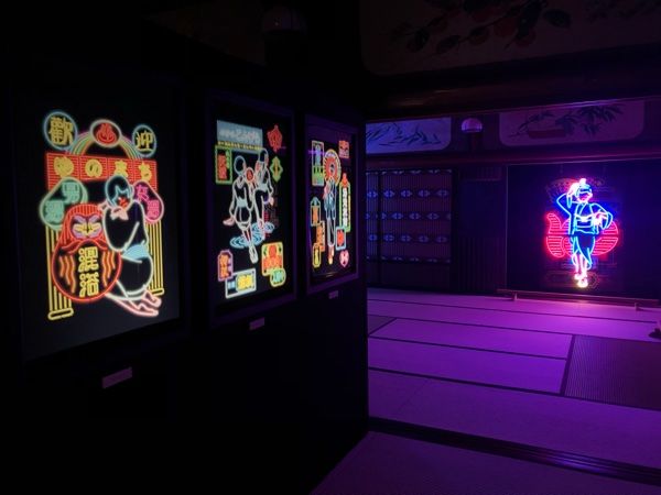 星光の間では、はらわた・ちゅん子氏によるレトロ感漂うネオン画の展示です。
