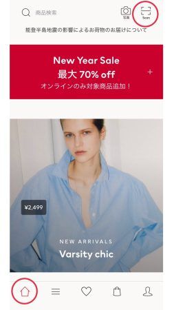 出典:H&Мアプリ① H&Mアプリのメンバー登録をする ② 古着を持参してスタッフさんに伝える→回収BOXに入れる ③ ホーム画面の右上のスキャンを押してQRコードを読み込む