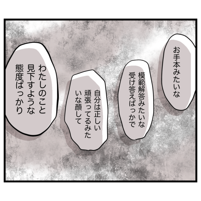 『自分は正しい。頑張ってる』みたいな顔して・・わたしのこと見下すような態度ばっかり・・」