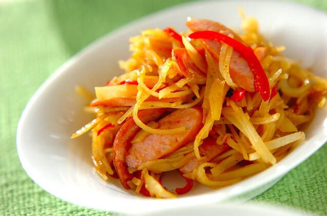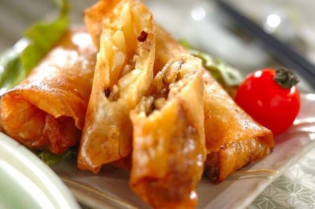 ソーセージをひき肉に変えて作ってみましょう。春巻きの皮や餃子の皮で包んで揚げると、サモサのような一皿に。