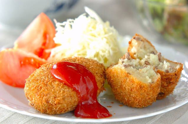 ひき肉とジャガイモの定番の組み合わせといえば、やはりコロッケですね。玉ネギがなくてもひき肉だけでコロッケは作れます。ひき肉を炒める時は塩こしょうを効かせるとぐっと美味しく仕上がります。