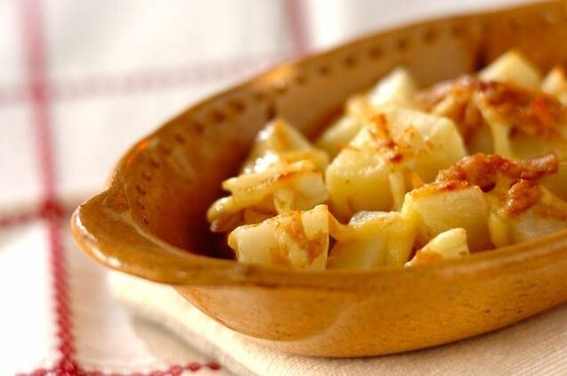 しょうゆ、酒、みりんで香ばしく炒めた豚ひき肉をホクホクのジャガイモに和えた一品は、どこか懐かしさを覚える味です。お弁当にも良いですね。少し残ったら潰して丸めてコロッケにもできちゃいますよ。