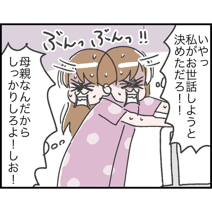しかしあまりのつらさに、ナースステーションに赤ちゃんを預かってもらいたいという気持ちも芽生え、自分でお世話ししたい気持ちとの間でしおさんの心は揺らいでいたようです。